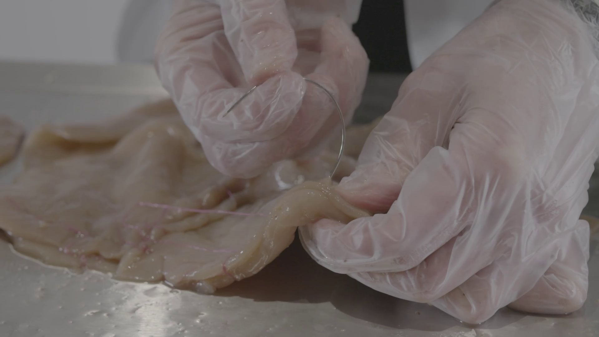 The objects in the exhibition are connected through their materiality: SCOBY, or symbiotic culture of bacteria and yeast, which forms as a result of the cooperation between lactic acid bacteria, acetic acid bacteria, and yeast. Maja, exhibited in the artist’s solo exhibition Opalescent in 2023, has returned to the exhibition space, still in an aquarium, but transformed during the performance into an unrecognizable new body made of remaining healthy tissues. This body still has some of the historical layers that it has accumulated over more than three years of existence, but these layers are now in a new relationship, raising the question of whether this relationship is possible and viable. During the exhibition, nourished by sweet black tea provided by the gallery curators, this exhibit will either grow and transform or die. Another element created from SCOBY as the main material is an amber-colored screen suspended in a wooden frame in the exhibition space. This screen was grown from the same historical SCOBY material that once provided the raw material for Maja. The matter is transformed, but it carries the heritage of dozens of sweet generations – water, tea, and sugar – between Lithuania, Estonia, Lithuania, Germany and back. It becomes an exploration of the ecology of care and gratitude, considering all the gentle, caring hands that have tended to this symbiotic culture before it turned into amber.