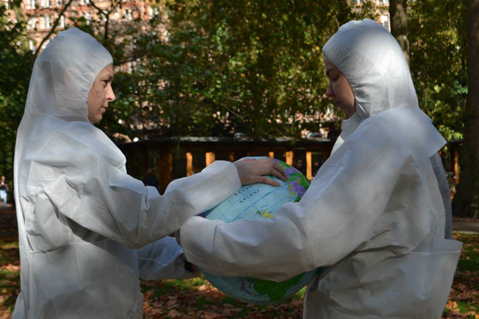 This one was a great deal of fun: it was a pop-up and although planned, done without any permissions or stuff, basically the way I love it to happen. We made it on the 19th of October 2014, London, Russell Square. It was about the stuff that’s happening to the world, about our place in the world. Basically inspired by the events in Ukraine and Syria, but generally – about the way the invisible warfare is happening all around and about the conflicts generated by the inexhaustible crave for the “Lebensraum“. About the world leaderships that have failed. About democracies that are being tread upon. About faith that is being destroyed and hope being broken down each day. And about how blind we are to what is happening to the world. No highly elaborate metaphors this time. None needed when mourning.